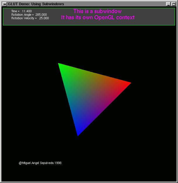This concludes a very simple introduction to the use of GLUT subwindows. At this point I have to