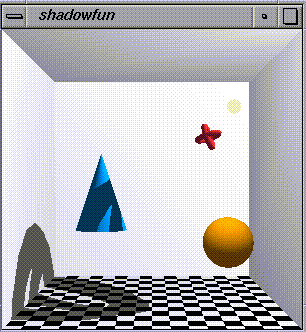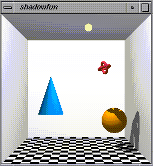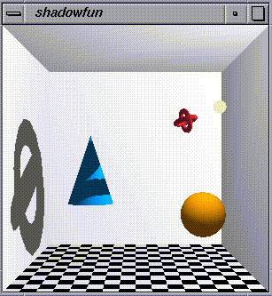 Interested in the source code? The shadowfun.c example does not use the RTS library. It is implemented as a monolithic OpenGL Utility Toolkit (GLUT) program so that you can see the algorithm in the context of a single program.